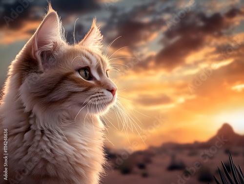 © MT Photo, Obraz premium Cat Watching Sunset