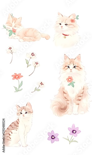 © BLUEE, Fototapeta premium cat watercolor illustration, generation AI