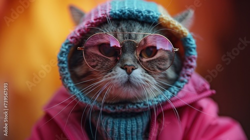 Fototapeta premium Cat Wearing Glasses and Pink Coat