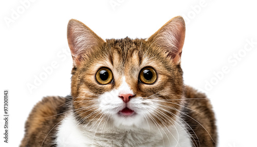 © Saddha Visual, Obraz premium Cat with funny, cute and charming expression looking at camera isolated on white background