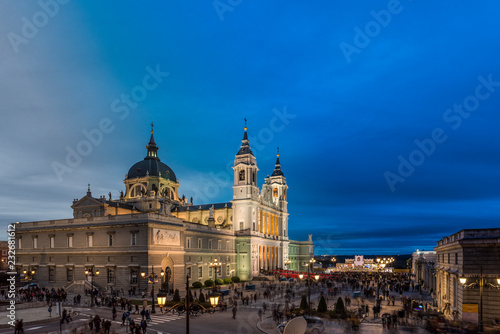 © jfreplica, Fototapeta premium Catedral de la Almudena en Madrid el 9 de Noviembre de 2018. Día y Noche.