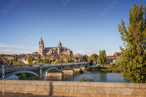 Naklejka premium catedral de salamanca, rio tormes, puente de hierro