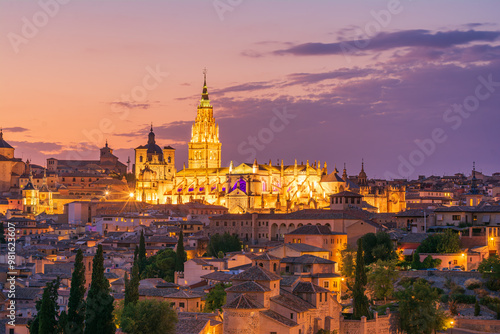 © JESUS, Naklejka premium Catedral de Toledo al Atardecer desde el Cerro de Bú, España