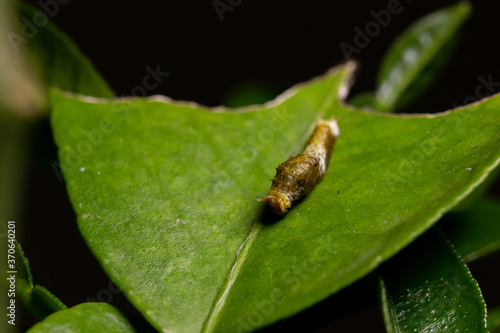 Fototapeta premium Caterpillar Citrus on green leaf lemon tree