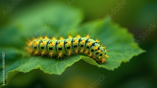 © ldelfoto, Naklejka premium Caterpillar on a green leaf