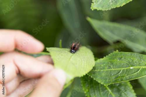 © Nektarstock, Fototapeta premium Caterpillar on a Green Plant Leaf 3