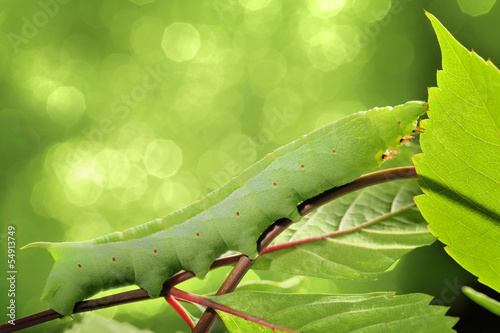 © Lily, Naklejka premium Caterpillar on green leaf.