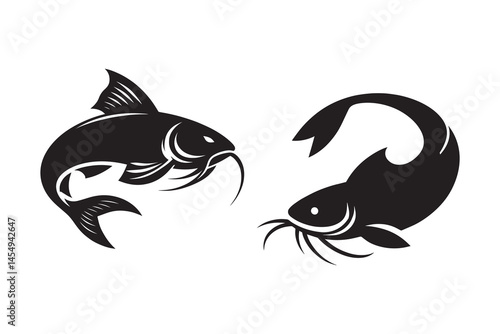 © MdAhad, Fototapeta premium Catfish silhouette with white background