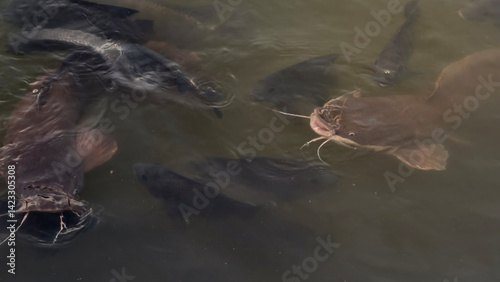 © Sorat, Obraz premium Catfish Swimming in Murky Water Pool