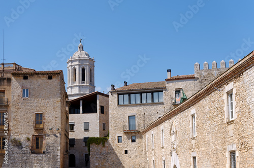 © hassan bensliman, Fototapeta premium cathedral and Old street in Girona city