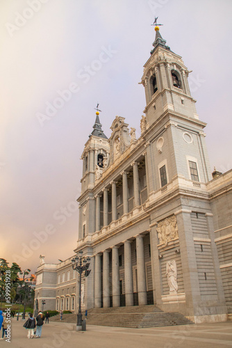 Obraz premium Cathedral de la Almudena during golden hour at sunset, Madrid, Spain