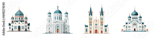 © Naruedetch, Obraz premium Cathedral Illustration Set: Eastern European Church Architecture