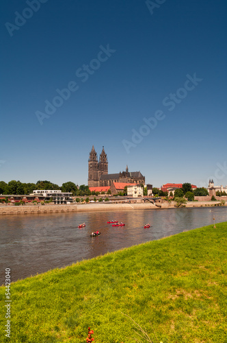 Obraz premium Cathedral of Magdeburg at river Elbe, Germany