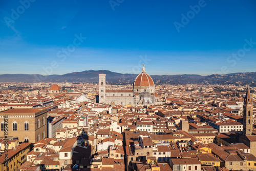 Obraz premium Cathedral of Santa Maria del Fiore, view from the Piazza della Signoria over the rooftops, Florence, Tuscany, Italy