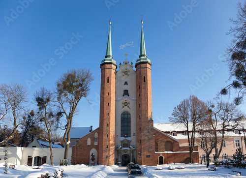 Obraz premium Cathedral Oliwa in winter, Poland.
