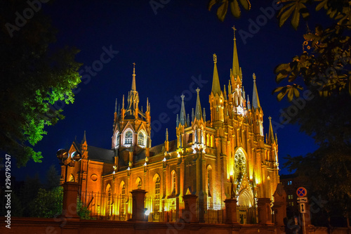Fototapeta premium Catholic Cathedral illumination at night