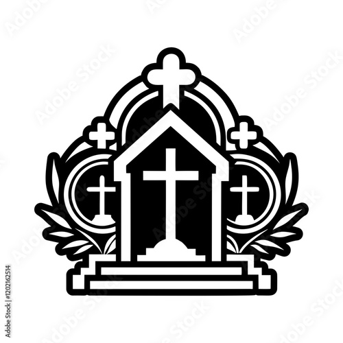 © creativestall, Obraz premium Catholic cemetery icon in solid style