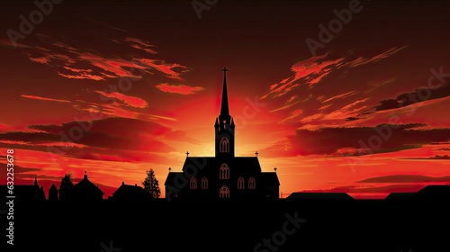 Obraz premium Catholic church silhouette against sunset