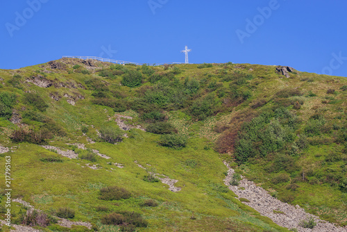 © Fotokon, Fototapeta premium Catholic cross on peak of Tarnica Mountain in Bieszczady National Park, Subcarpathian Voivodeship of Poland