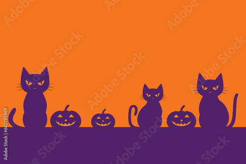 Obraz premium cats and pumpkins in an orange background with the sky