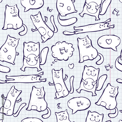 Obraz premium Cats doodles on a notebook paper, seamless pattern