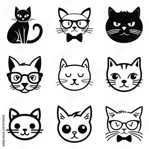 Obraz premium Cats3 Flat Icon Set Isolated On White Background