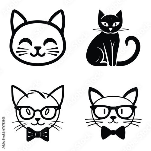 Obraz premium Cats3 Flat Icon Set Isolated On White Background