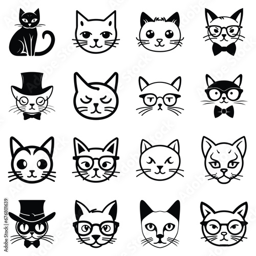 Fototapeta premium Cats3 Flat Icon Set Isolated On White Background