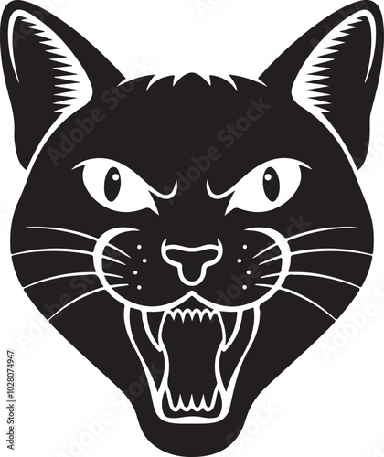 © Black And White, Obraz premium Cats Icon Vector Black and White Color. Black Cat Sitting On White Background Vector Illustration