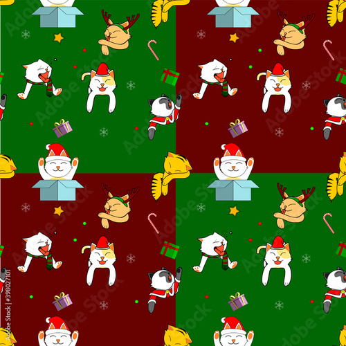 © General, Fototapeta premium Cats spreading many kinds of emotion with Christmas theme. Seamless pattern. Vector Illustration
