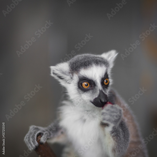 © edojob, Obraz premium Catta lemur on a tree branch at the zoo savor a snack and relax