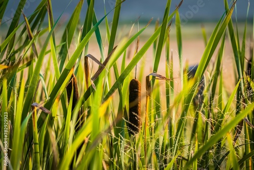 Fototapeta premium Cattail (Typha latifolia), tall marsh grasses in a wetland