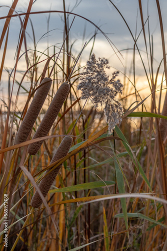 © Aktrisa, Fototapeta premium cattails and reeds grow near the water