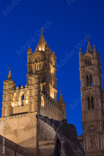 Fototapeta premium Cattedrale di Palermo, vista notturna dei campanili illuminati