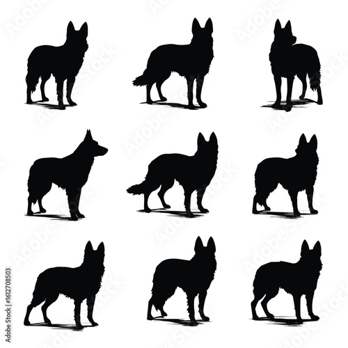 © Fouzia, Fototapeta premium cattle dog silhouette set, Black & White silhouette set