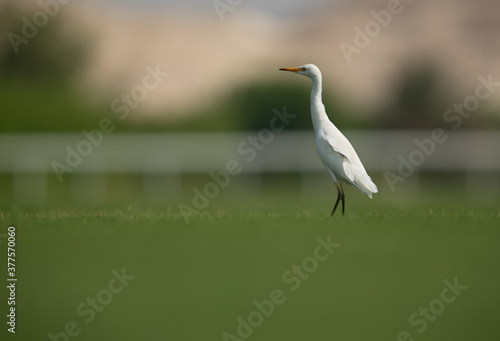Naklejka premium Cattle Egret on green grass
