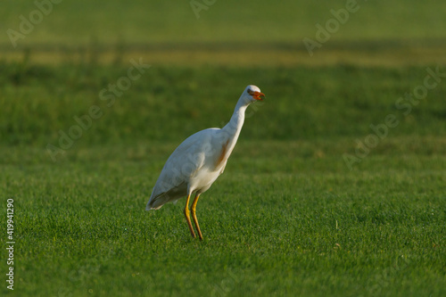 © mktuteja, Naklejka premium Cattle Egret on green grass field