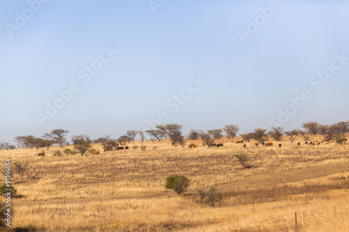 © ChrisVanLennepPhoto, Fototapeta premium Cattle Farming Dry Landscape