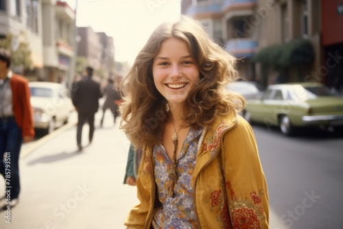 © blvdone, Fototapeta premium Caucasian American hippie woman in the 1970s
