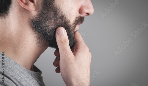 © andranik123, Obraz premium Caucasian bearded man in grey background.