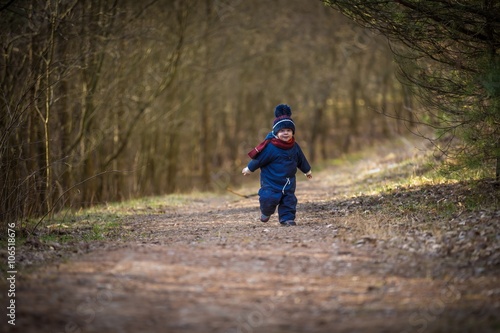 © milosz_g, Naklejka premium Caucasian boy playing outdoor at springtime