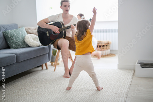 © natalialeb, Obraz premium Caucasian child with Down syndrome with family