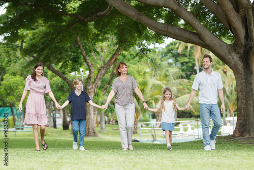 © DG PhotoStock, Obraz premium Caucasian family parent and their children picnic at the park in morning.