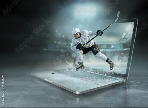 © Andrii IURLOV, Fototapeta premium Caucasian ice hockey Players in dynamic action in a professional