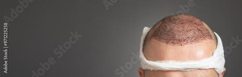 Fototapeta premium Caucasian man after hair transplantation.