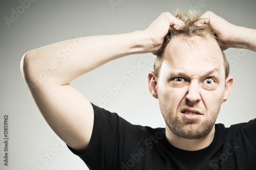 © camrocker, Obraz premium Caucasian Man Pulling Out Hair WIth Frustration