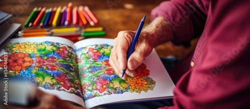 © HN Works, Fototapeta premium Caucasian senior man enjoying coloring book for National Coloring Book Day promoting retirement wellness and relaxation through art