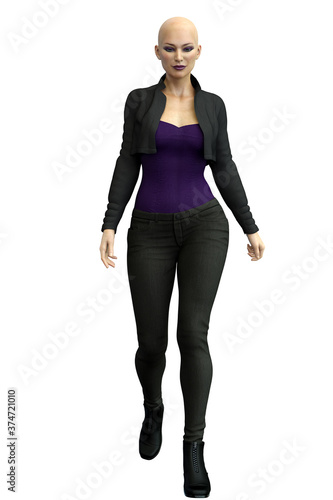 Fototapeta premium Caucasian Urban Fantasy Woman on Isolated White Background, 3D Rendering 3D...