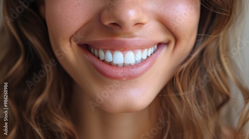© Руслан Галиуллин, Obraz premium caucasian woman with perfect white smile, dentistry advertising