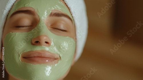 © Evon J, Fototapeta premium Caucasian young female relaxing with green facial mask at spa